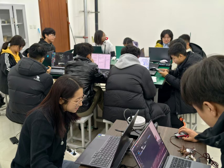 机械创客社团面向全校机械相关专业学生开放,聚焦机械设计、电控研发、视觉应用等多个前沿专业方向,常态化开展各类兼具专业性与实践性的特色活动。在社团发展初期,成员们曾遭遇诸多挑战:机械操作面,部分成员对切割机、机床等设备及相关配套软件的运用不够熟练,影响实践项目推进效率;电控研发领域,单片机嵌入式技术学习门槛较高,不少成员面临知识理解不深入、实际操作难上手的困境;视觉应用方向,算法知识更新迭代快,学习进度难以契合实践项目的实际需求。面对这些难题,社团成员们并未退缩,而是齐心协力、互帮互助,利用课余时间深耕钻研,主动向专业老师请教,在一次次实验与调试中积累经验、突破瓶颈。凭借这份执着与坚持,社团成员成功斩获第十八届全国三维数字化创新设计大赛“华中数控杯”工业协作机器人及数字孪生创新应用专项赛省赛二等奖,用实力证明了社团实践育人的显著成效。