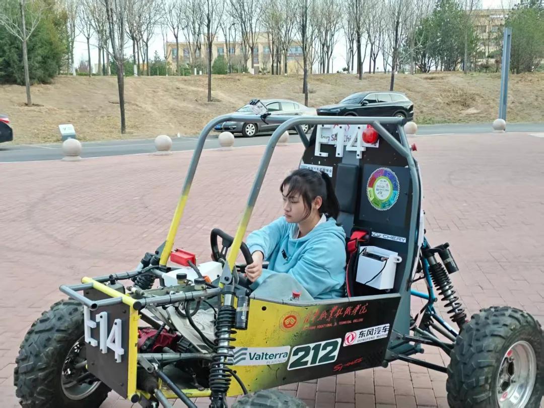 座谈交流结束后,本次活动迎来另一激动人心的实操环节——巴哈赛车E14试驾体验。在专业人员安全规范讲解与对本校E33了解的双重保障下,晋速成员完成了巴哈赛车试驾体验,亲身感受了其对于操控性能、动力输出与越野适配性,直观掌握了赛事车辆的驾驶技巧与操控逻辑,对巴哈赛事的竞技特点、车辆调校逻辑有了更具象、更深刻的认知。
