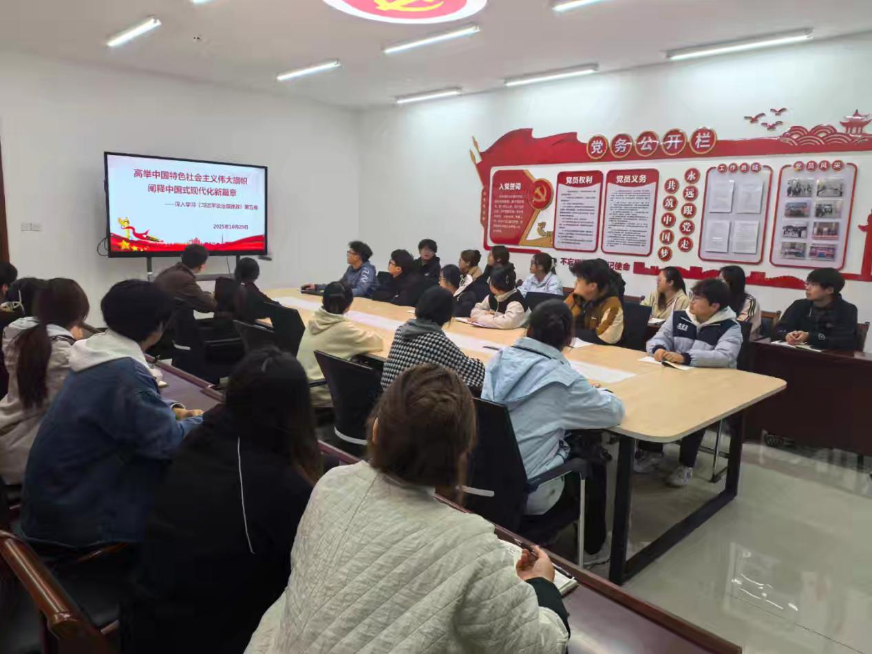会议伊始,韩丽娟老师以理论解读为核心,为全体党员系统梳理《习近平谈治国理政》第五卷的出版背景、核心内容及重要意义,简要介绍马克思主义中国化时代化最新成果。她围绕马克思主义中国化时代化最新成果展开讲解,结合“中国式现代化”重大课题,帮助党员们精准把握新时代赋予的使命任务,清晰认知国内外发展新形势。接着,韩丽娟老师带领党员同志们深入学习习近平新时代中国特色社会主义思想的最新理论成果,重点解读总书记在改革发展稳定、内政外交国防、治党治国治军等领域的最新论述,进一步阐释著作的核心脉络、思想内核与重大理论创新,为后续交流奠定坚实理论基础。随后,各支部党员以“学思践悟”为主题展开热烈研讨,分享学习心得与实践思考。其中,太阳成集团tyc522cc学生党支部代表郭枝梁同志率先发言,他表示:“《习近平谈治国理政》第五卷的出版发行,为我们系统把握党的创新理论发展脉络、准确理解新时代新征程党的使命任务提供了权威指引,必须深刻领会其中蕴含的原创性理论贡献与思想精华,才能真正做到学懂弄通做实。”活动最后,韩丽娟老师对本次党日活动进行总结发言,她呼吁全体学生党员要以此次学习为契机,立足自己的专业领域,把学习成果转化为坚定的理想信念和务实的行动自觉,在强国建设的征程中挺膺担当,让青春在理论指引与实干奉献中绽放光彩。