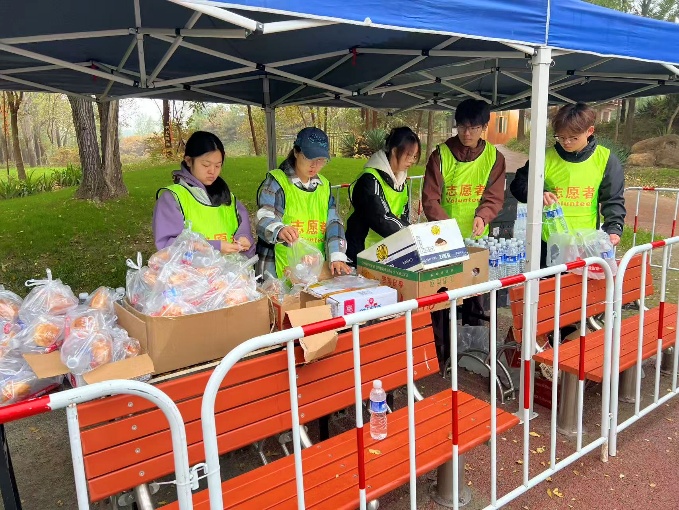 活动当日,在现场负责人的统一指导与统筹调度下,志愿者团队有序进驻各服务岗位,高效推进志愿服务工作。在行李寄存专区,志愿者们严格遵循流程,逐一对选手号码牌与个人信息进行细致核对,确保每一件行囊都得到妥善收纳与保管,以严谨细致的态度守护选手财物安全;在赛事服务帐篷内,志愿者们凭借前期培训掌握的赛事知识,以耐心周到的服务、专业规范的解答,为参赛选手提供赛程指引、规则解读等咨询服务,切实为选手消除参赛疑虑;针对赛事供给物资,志愿者们认真完成面包分装、饮用水摆放等工作,将能量与关怀融入每一份补给物资。此外,另有部分志愿者负责赛道秩序维护工作,协助赛事工作人员引导选手行进方向、疏导现场观众,有效避免选手与观众发生碰撞受伤,全力保障赛事安全、有序推进。各岗位志愿者均以高度的责任意识投入工作,为赛事高效运转筑牢坚实保障,切实为参赛选手营造了安心、暖心的赛事环境。