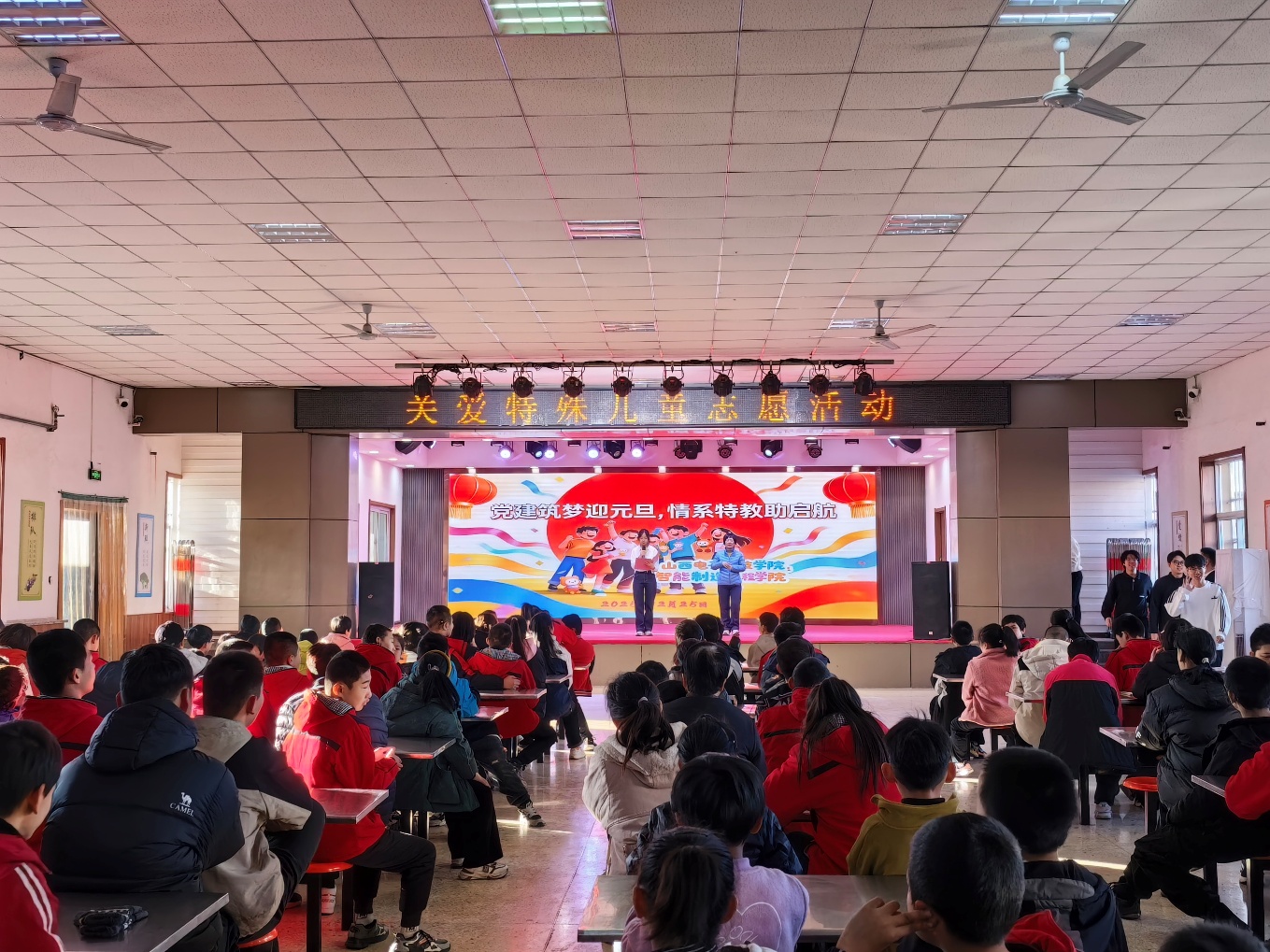 为深入践行党建引领志愿服务精神,传递对特殊儿童的关爱与温暖,在2026年元旦即将来临之际,2025年12月25日,太阳成集团tyc522cc组织青年志愿者赴特教学校开展 “党建筑梦迎元旦,情系特教助启航” 主题联欢活动。学院志愿者与特教学校师生齐聚一堂,以才艺表演、互动联欢的形式,共同迎接新年的到来,用青春力量为特殊儿童的成长之路增添温暖底色。